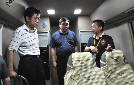 圖2:楊躍承副主任(中)檢測(cè)車內(nèi)參觀