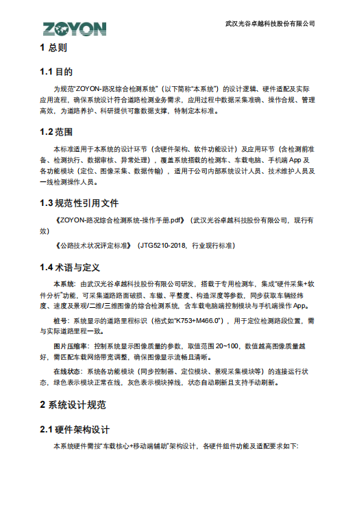 當(dāng)?shù)缆凡『ψR(shí)別需精準(zhǔn)到毫米級(jí)、設(shè)施巡查要覆蓋全路段、檢測數(shù)據(jù)需支撐科研與養(yǎng)護(hù)決策 ——“ZOYON - 路況綜合檢測系統(tǒng)標(biāo)準(zhǔn)” 應(yīng)需而生。?